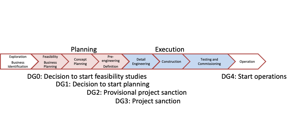 Field development is the process through which a discovered oil field is built so that it can produce oil and gas. This is a complex process, which goes through a so-called Capital Value Process, where investment decisions are made at decision gates. The model used by Equinor is shown in the following figure.