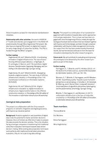 Results. This project is a continuation of our sustained en- gagement with transitions towards data-centric approaches in oil and gas exploration. This is a topic we have been en- gaged with since the beginning of Sirius; initially through the Geological Assistant demonstration that we initiated together with Equinor and Schlumberger, and later through sustained collaboration with Equinor’s data management community. Our output from this has been predominantly theoretical results, but has formed and continues to form the basis for innovations developed by the other research programs.